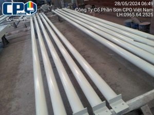 - Sau khi trộn xong sơn, dùng ru lô, cọ quét sơn hoặc máy phun sơn phủ trực tiếp sơn epoxy kết cấu thép lên bề mặt cần sơn.